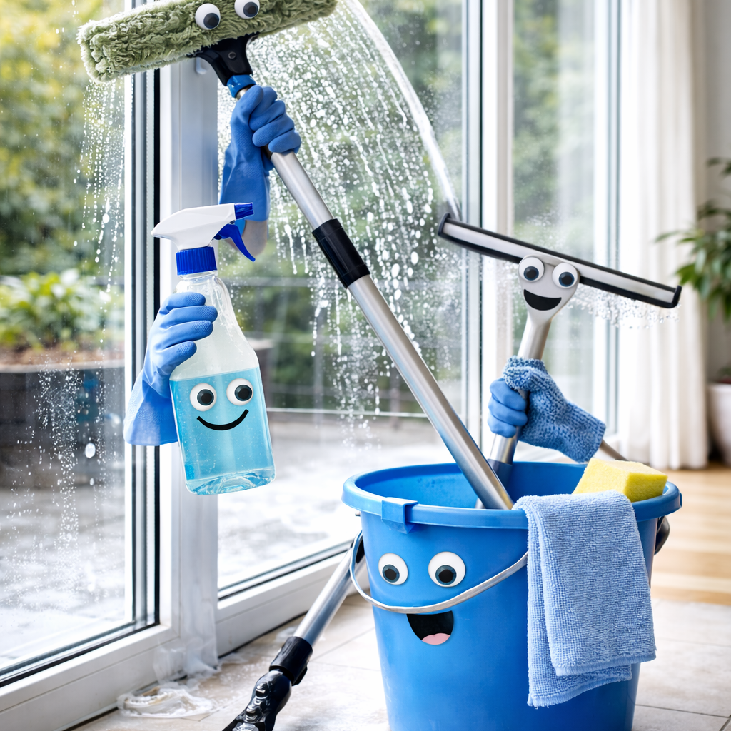 Lavage des vitres qui comprenant dans la prestation, le nettoyage des menuiseries, des rails et passage du grattoir si calcaires ou grattons vitres.
